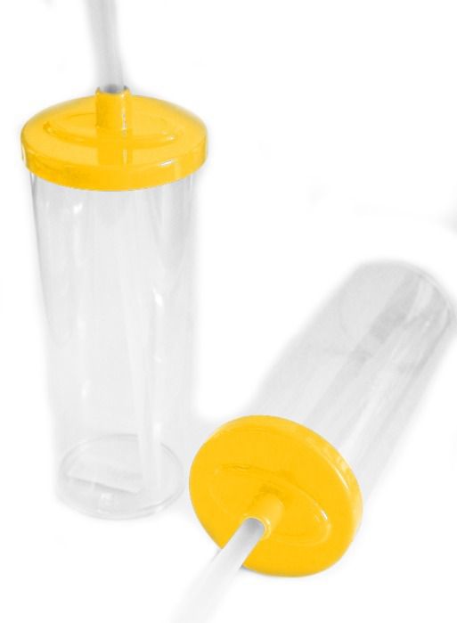 Copo Long Drink Play Amalu Cristal Tampa Amarelo Solido 300Ml Unidade