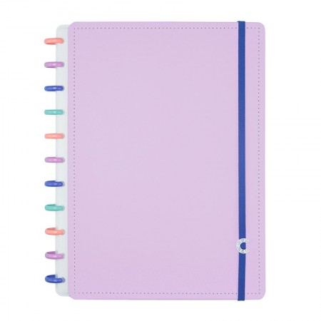 A5, Médio ou Grande: Capa e contracapa rígidas, 01 bolsa plástica, 01 folha de instrução de uso e manuseio, com refis e acessórios da marca disponíveis no verso, 01 folha de identificação com calendário no verso, 04 divisórias com abas para identificação (02 pretas e 02 transparentes), 80 folhas offset 90g (60 folhas pautadas e 20 folhas lisas brancas para impressão), 01 suporte com elástico para 01 caneta ou 01 lápis e discos M + elástico.