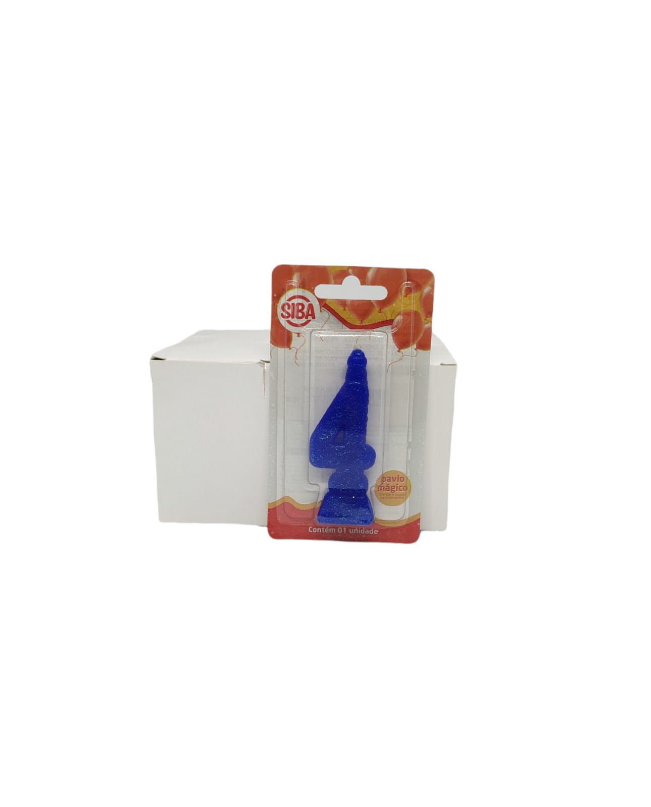 Vela de Aniversário Número 4 Pop (Super) Siba Cor Azul Com Glitter No Atacado com 10 Unidades Preço de Fábrica.