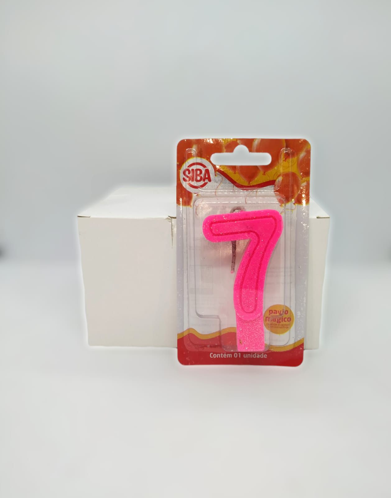 Vela de Aniversário Número 7 Plus Big Siba Cor Rosa com Glitter no Atacado com 10 Unidades Preço de Fábrica.